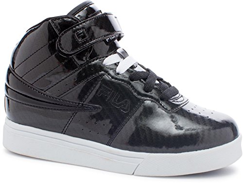 Synthetic upper in three colors. Mid cut construction. Lace-up closure. Patent leather-like strap across vamp for a snug fit. Mesh tongue and padded collar for cushion. Fila logo embroidered on tongue and side. Padded footbed for comfort. Rubber outsole for traction and grip. Material: Synthetic.