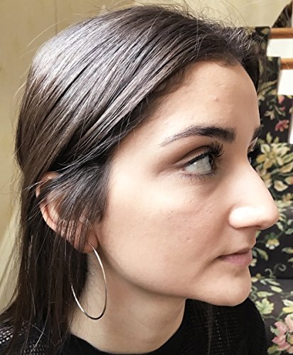 These 14k white gold continuous endless hoops are simple, elegant, and the perfect addition to your jewelry box. These continuous hoops are extremely versatile, allowing you to wear them with any outfit at any time of the year. The endless clasp is so secure and comfortable, you can put them in and leave them in for days! And at 2.4 inches in length, they are the perfect size for when you need something big and bold. Each pair of hoop earrings comes gift wrapped in an attractive package. These hoops are 14k white gold. They are NOT plated, but have a pure gold body with a hollow interior. Every hoop comes with an authenticated 14k stamp.Feature