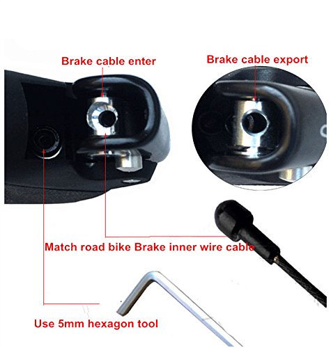 Specification:Colour: Black with Silver lever, or Black with Black leverErgonomic design with forged aluminium leversQuick release mechanism for easy wheel removalGrippy rubber brake hoodsInternal cable routingBrake cable type: 1.5 -1.6 mmDesigned for 23.8mm - 24.2mm handlebarsClip ring:22.2~23.8mmWeight: approx. 286 grams / pair(Brake inner cable not included)Feature