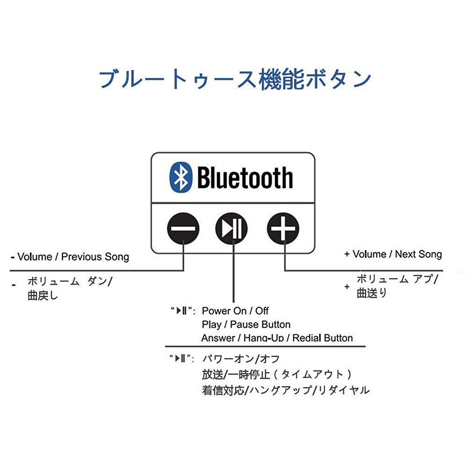 Pressing the "+" / "-" button will control the volume up / down volume and the previous song / next song.