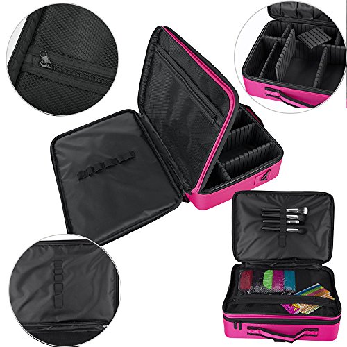Size (length*width*height): 15.75"x5.51"x11.41"/ (40 x 29 x 14CM) (The data is meansured by hand, please allow some difference). Four layers to organize different makeup tools.