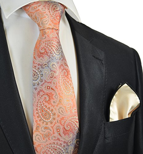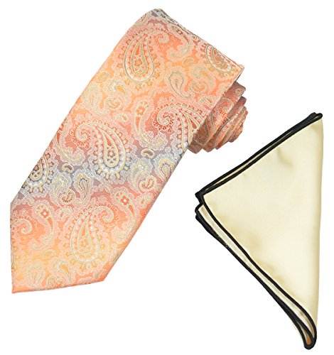 (Paul Malone)/Accessories/Ties/DIRECT FROM USA/Coral Rose Paisley Men's Tie and Contrast Pocket Square Set