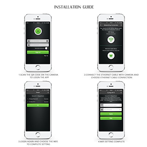 Easy Setup: Scan the QR code in the manual and download MIPC app for iOS and Android. Please connect your devices with the camera via Ethernet cable for the first time connection.