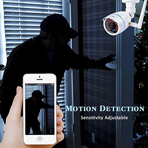 Night Vision&Motion Detection: Equipped 21 IR LEDs, supports up to 20m(66ft) night vision detection range. Motion Detection automatically push notification to your devices once detected the trespassing.