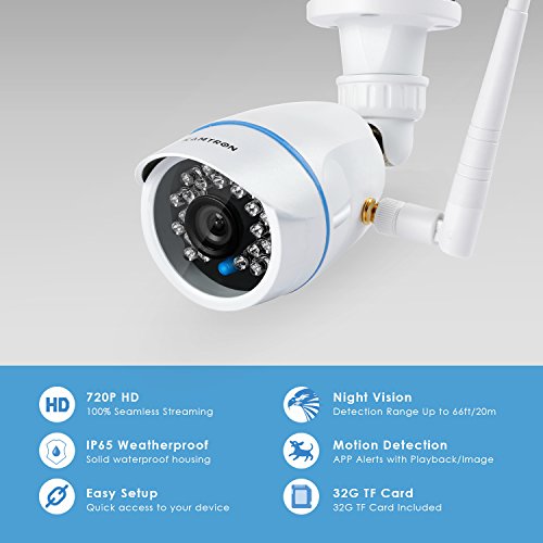 720P HD: Seamlessly streaming crystal clear 720P/30FPS real-time video on your devices. Come with a free 32G TF card for recording. 4x Digital zoom. Supports 2.4GHz WiFi(5GHz WiFi not available).