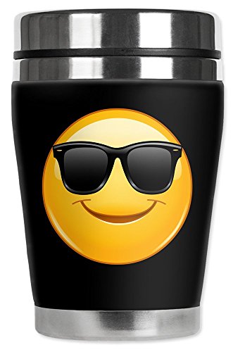 Mugzie brand 12-Ounce Travel Mug with Insulated Wetsuit Cover - Sun Glasses Emoji