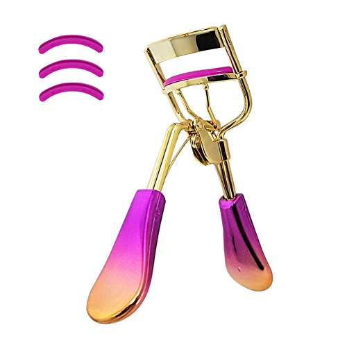 -. Feature : Suitable for All Eyes: Fits for eyes of all shapes & sizes including Asian, almond shaped and deep set eye. Eyelash curler will curl short lashes, medium lashes and long lashes / Stylish & professional: Professional quality eyelash curler comes with silicone pads designed to prevent pinching and pulling of your eyelashes. Create the most voluminously curled eyelashes, eye-opening look just takes seconds, and will last all day / Exquisite electroplating designed: Anti-slip easy to control the handle plating design, Gradient color, not fade and lightweight, convenient to put in your cosmetic bag, allow you to use anytime and anywhere / What you get: Comes with a soft silicone refill already inside the eyelash curler pluses 3 additional refill pads, tenacious and soft, helping curl big bold and intense lashes / Money Back Guarantee: If you're not completely satisfied with the eyelash curler simply let us know, and you'll be offered a FULL replacement or refund