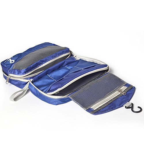 - Top half with a hook, which could hangs in the bathroom, consists of one inner zippers compartment which fits face moisturiser and hair cream, lip balm ,and other small thing.