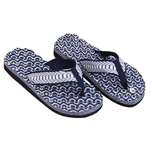 -. Binding : Apparel -. Brand : Mimgo Store -. Color : Blue -. Department : mens -. Feature : Vamp material: EVA ; Insole material: EVA ; Color: Blue / Closure type: slip-on ;Item type: Slipper / Gender: men , Note the SIZE and Length / Soft and light very comfortable to wear / These stylish and comfortable wedge heels are the perfect summer sandal and can easily be dressed up or down -. ProductGroup : Shoes -. ProductTypeName : SHOES -. Title : Summer Mimgo Soft Casual Men Flat Wedge Sandals Flip Flops Slippers Beach (Blue)