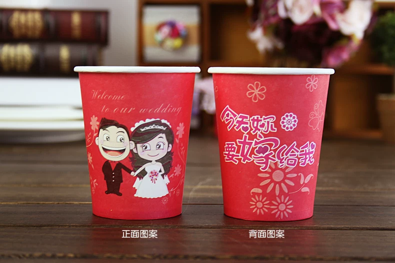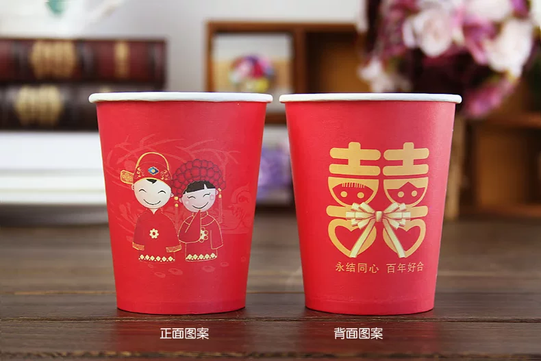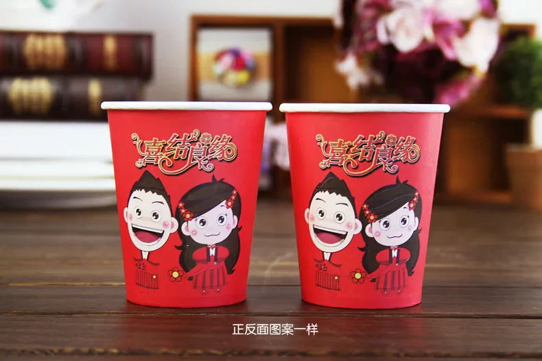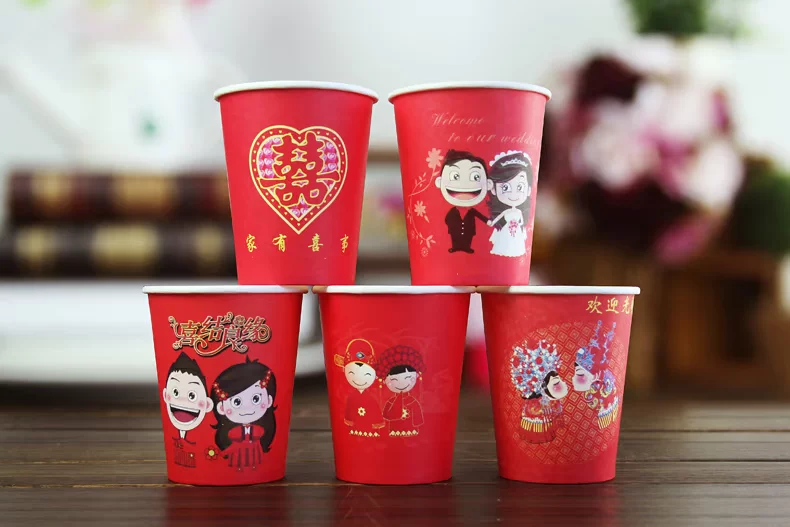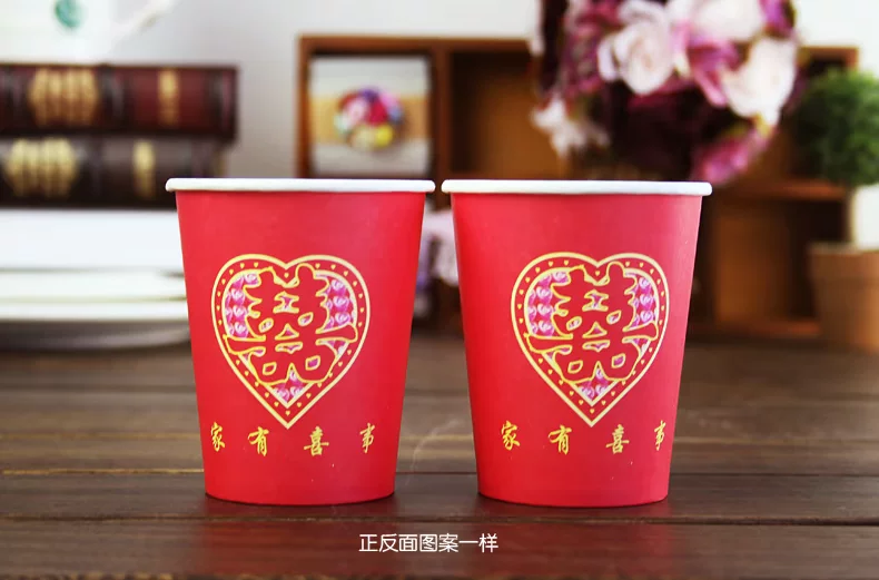 转角爱加厚喜杯 一次性纸杯 红色 结婚喜庆专用婚庆婚宴婚礼用品