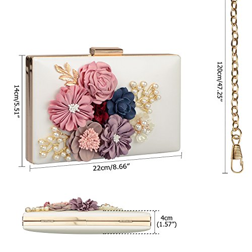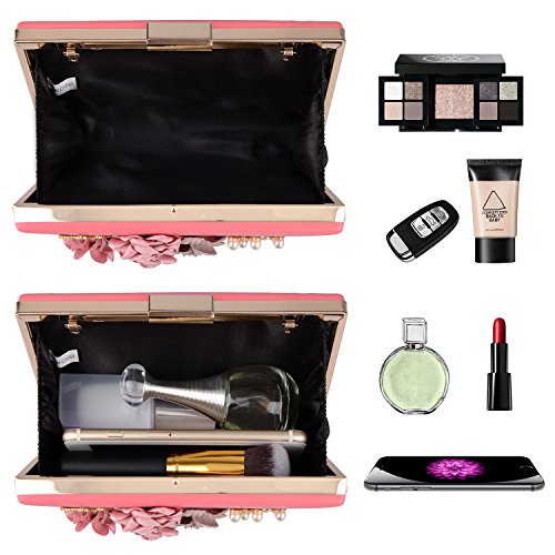 Features: 1.Size: Large purse: 7.7 in (L) X 1.2 in (W) X 4.5 in (H) 2.. Big capacity to fit iPhone 7 plus and may daily uses well. 3. Gold Strap Length Is removable can used as a should bag or crossbody bag. 4. It's has exquisite handmade and Simulation flower and beads sewn on one side. 5. Pu leather back , it won't rub against your clothing and ruin them. 6.Closure type: Big rhinestones decoration snap closure 7.Unique and Beautiful color fit many your dresses and clothes. Occasions: Wedding/Party/Cocktail/Shopping/Prom/Film festival/Disco ball Package Includes: 1 x Flower Evening Clutch Bag Maintenance Tips 1. When stained with dirt, please dip it in soapy water with a soft sponge brush and gently wipe, and dry it in shade. 2.When not use for a long term, please tightly wrap it into the bag and place in cool and dry place. 3.It can't avoidable that you will receive the clutch with some smells from original material as it's brand new. But the smell will be gone if place the clutch in freely circulating air for 1-2 days. 0 |