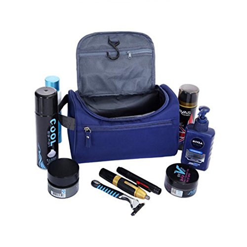 Mens Travel Toiletry Bag with Hanging Hook Waterproof Shaving Dopp Kit Organizer Travel Cosmetic Pouch Case Blue