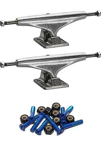 -. Feature : One (1) set of two (2) Silver Independent Low Silver Skateboard Trucks - 139mm Hanger 8" Axle (Set of 2) / Axle width: 8" / Hanger width: 139mm / Warehouse Skateboards Standard Phillips Head Dark Blue Skateboard Hardware Set - 1" / This is a bundle of 2 items - (1) set of skateboard trucks + (1) set of mounting hardware