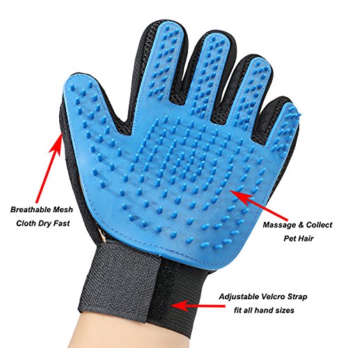 Product Details: ·Multi-function Deshedding Glove ·With Enhanced 255 Soft Rubber Tips ·Adjustable Wrist Strap (One Size Fits All) ·Lightweight and Breathable ·Gentle Hair Remover ·Machine Washable (Easy to Clean) ·Safe for Cats, Dogs and Other Pets
