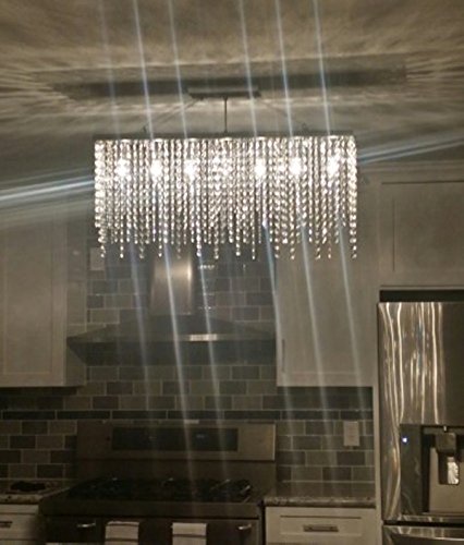 7PM Modern Linear Rectangular Island Dining Room Crystal Chandelier Lighting Fixture (Medium L32")