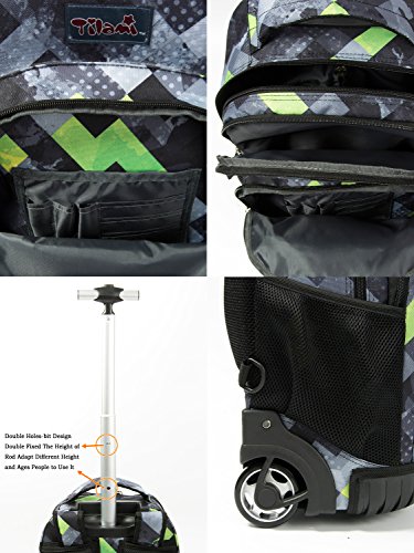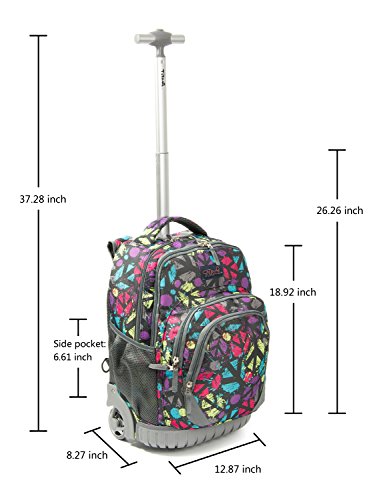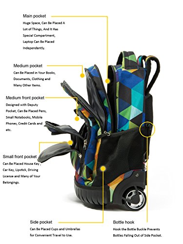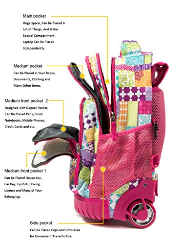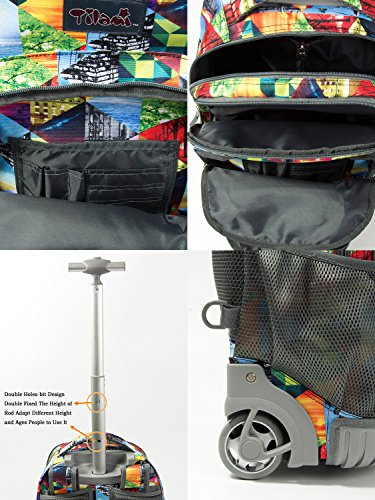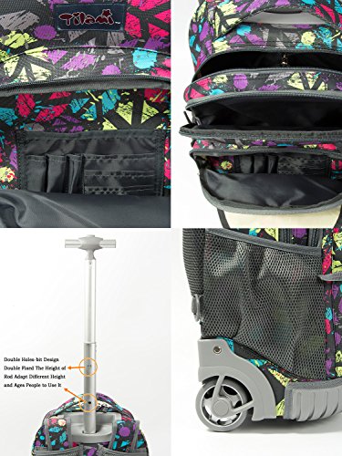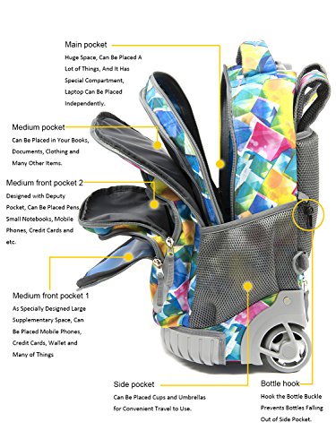 Do you have any reason that you don't buy it now? Weight? No! It can bear 30lb at least. So if kids think their bags is too heavy then can change to rolling it. If so,kids can carry their books and stationery easily. Maybe it is another way for kids to lighten the burden. It will be dirty? No! It is convenient to put the strap into the back mesh cushion if you want to wheeling it. Although you are in a rainy day, you just need pull-out the wheel cover from the zipper that top of the wheel, and cover the wheel, then you can avoid embarrassment .A clean bag will give you a nice felling and you will have a nice day. Color? No! Different colors in different pattern,you will find your favorite in them. Details: Brand: Tilami Sku: TL0014B2 Color: Fairy Cat Fantasy Fabric: Polyester Product Weight: 4.85lb Shipping Weight: 6.17lb Dimensions(Due to personal measurement technique is different, there may be 1"-2" error of the physical): 19.45"*9.45"*13.39"(Package); 18.92"*8.27"*12.87"(Product normal); 26.26"(Second stage height); 37.28"(Third stage height); 10.43"*9.25"(Medium front pocket 1); 11.73"*10.71"(Medium front pocket 2); 16.73"*11.53"(Medium pocket); 17.64"*13.31"(Main pocket); 9.49"*10.94"(Main pocket compartment); 6.61"*6.41"(Side pocket); Application: Study, Travel, Outdoor, Recreation, Work Recommend load-bearing: 33lb Aviation size limits: Size Allows Exclusive Technics: Wheel Cover Design, Noiseless Wheels Design, Tilami Armor Protection System, Back Cushion Storage Design 0 |