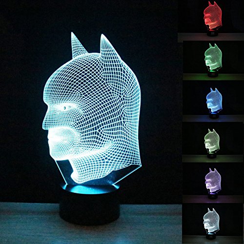 3D Optical Illusion Night Light USB Cable Smart Touch Button Desk Table Lights 7 Color Changing Bedroom Table Lamp Home Decoration Kids Gift (batman)