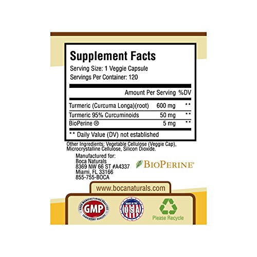 Pure Turmeric Curcumin - Extra Strength with 95% Curcuminoids - 100% Pure And Natural - By Boca Naturals