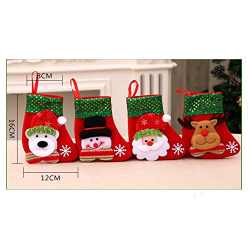 U.WILL 4 Set 16cm Mini Christmas Stockings, Red Craft Socks Christmas Decorations Gift/Treat Bags for Kids, Rusitc Santa Snowman Star White Cuff (2#)