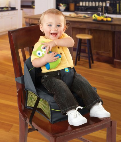 - Feature : Unique design is portable, strong and stable / Folds and unfolds in seconds / Adjustable straps quickly secure travel booster to chair / 3-point harness adjusts to help keep baby safe and secure / Stain-resistant fabric wipes clean easily