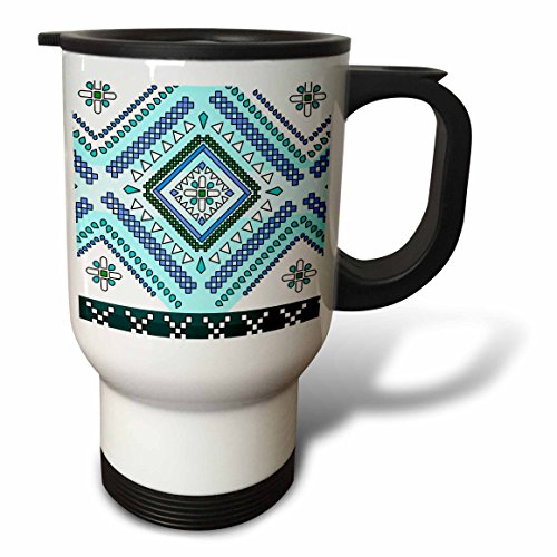 3dRose Aztec Andes Tribal Diamond Pattern Blue and White Travel Mug, 14-Ounce