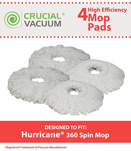 4 Hurricane Mop Pads Fit Hurricane PRO 360 Rotating Spin Magic Mops; Designed & Engineered by Crucial Vacuum