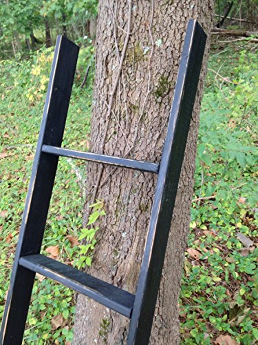 Product Description Beautiful hand made 60" wooden ladder. This unique piece is perfect for a variety of uses and adds a fabulous touch to any room. It can be leaned against the wall as a shelf or rack, hung vertically or horizontally as a wall shelf or even suspended from the ceiling, the possibilities are endless. Measures Approx. 60" tall 22" wide and 2.5" deep. Finished in picture black, hand distressed and treated with a coat of dark wax for added durability and beauty. Please select your desired finish color from our options. Please keep in mind that these are built from 100% reclaimed wood and with reclaimed wood you will have the following old tool marks, old wear marks, uneven boards, varying wood grain patterns, varying wood textures, rough boards, splinters and wood wear, slight warping, old stains and paints, exposed wood knots, and much more. Every one is hand crafted to order, no two are alike. Each ladder will have its own character and will show varying wood grain, wear, tool marks, etc. THESE ARE NOT FOR CLIMBING. They are for decorative use only. They are strong and will hold plenty of weight, they just aren't built to support a human :) We would be happy to build a structural ladder suited for climbing though if you wish, simply contact for a quote. Please see our other listings for various colors and finishes. Also feel free to ask about a custom size/color just for you. 0