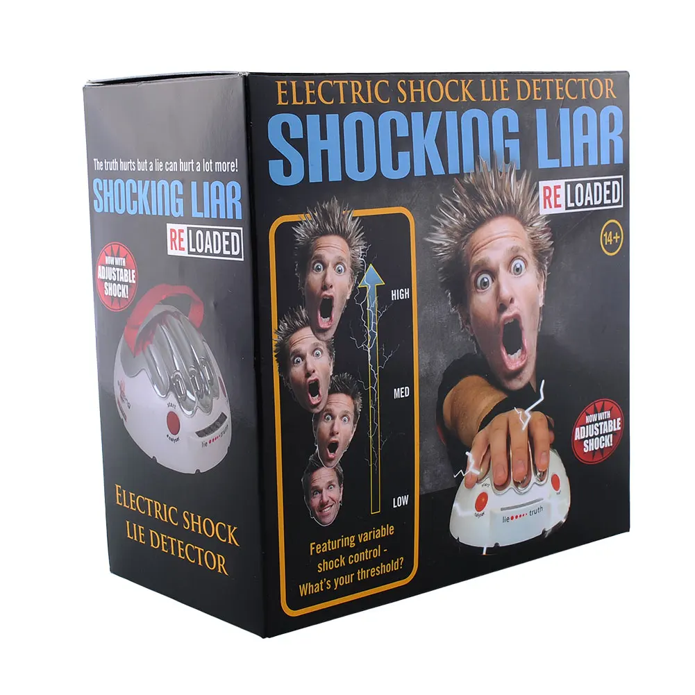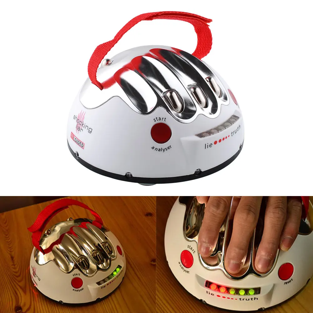 - Your questioned can now ask their own questions making sure to push the "Analyzer" button after each question. The "Lie Detector" will measure your 'lie level' each time the "Analyzer" buttons pushed. When it has assimilated your reaction to the question the 'Lie level LED's' will light up (the evaluation time may vary). There are 5 "lie level" LED's in total. 3 green and red. They will light up sequentially the more LED's that light up the more you are moving away from a truthful answer. When you tell a direct lie or have given an unacceptable amount of half truths or deviations, all of the 'lie level' lights will light up and you will receive an electric shock! Serves you right for being a liar;