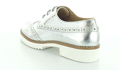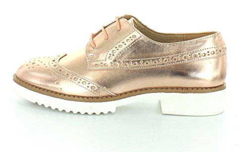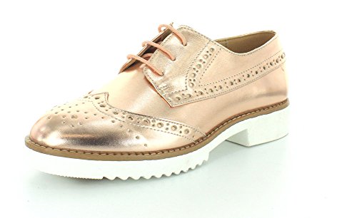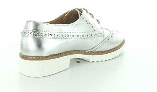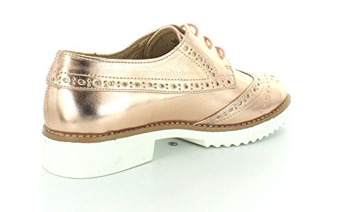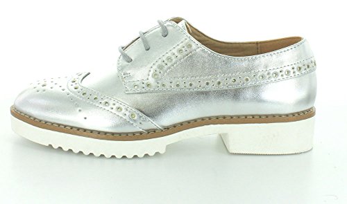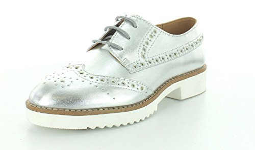 Product DescriptionBrogue design oxford with metallic synthetic leather with thick white sure grip rubber outsole.0