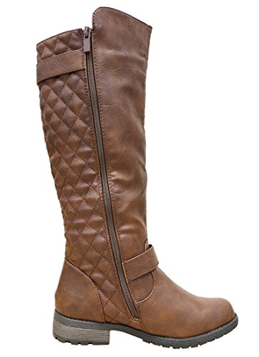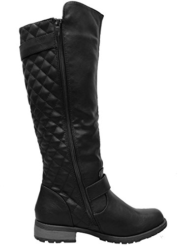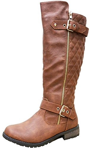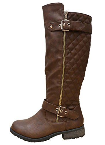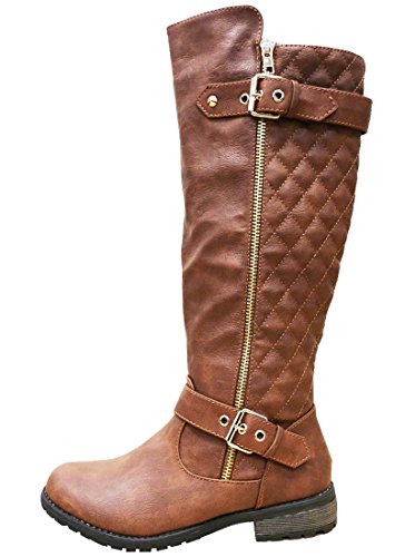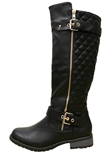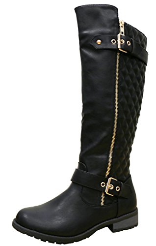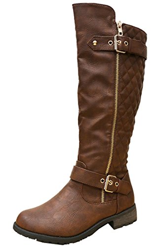 Cambridge Select Women's Quilted Side Zip Knee High Flat Riding Boots