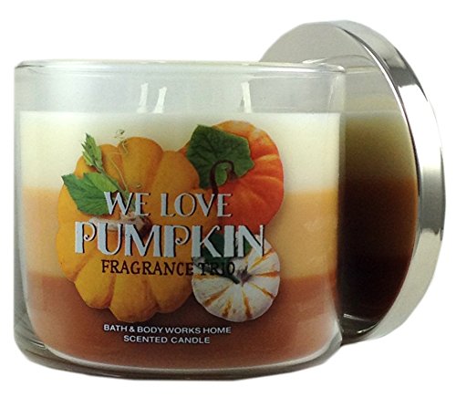 Bath & Body Works Home We Love Pumpkin Fragrance Trio Candle 3 Wick 14.5 Oz Limited Edition 2015 Scent Layer of Creamy Pumpkin, Roasted Pumpkin Butter and Sweet Cinnamon Pumpkin