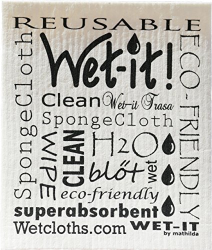 Swedish Treasures Wet-it! Cleaning Cloth, Works Great in Kitchen, Bathroom or Any Room, Reusable & Biodegradable, Wet-it Word White