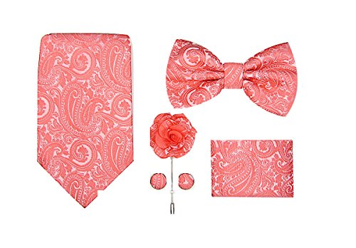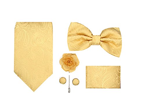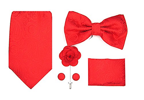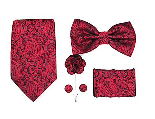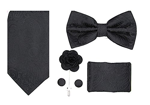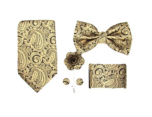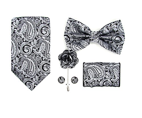 | (Oliver George)/Accessories/Ties/DIRECT FROM USA/Oliver George Mens Paisley Solid 5pc Box Set-NeckTie, Bow Tie, Lapel Pin, Cufflinks Pocket ... |