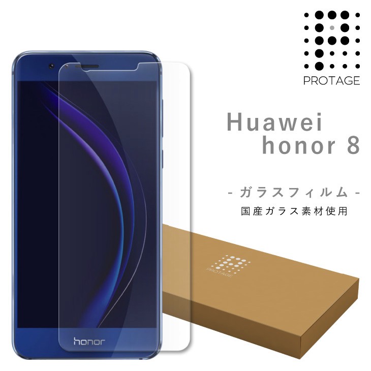 【送料無料 1000円ポッキリ】PROTAGE Huawei honor 8 ガラスフィルム 国産ガラス 液晶保護 フィルム 強化ガラスフィルム 0.33mm 硬度9H 指紋防止