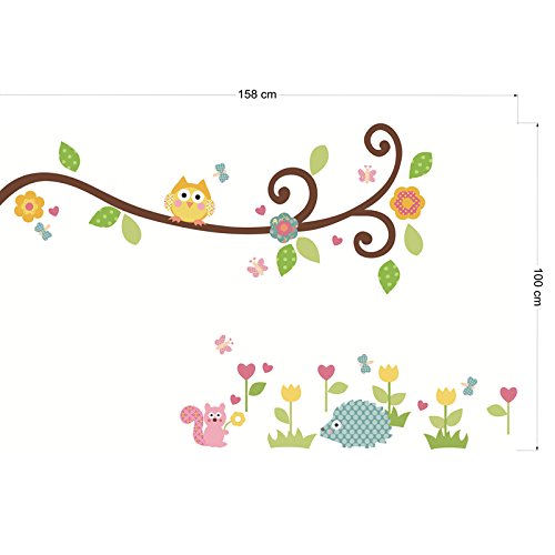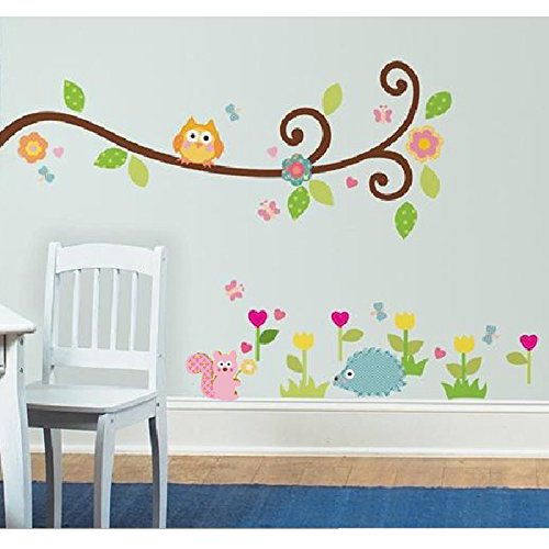 -. Title : Owl Squirrel Hedgehog Tree Branch Wall Decal PVC Home Sticker House Vinyl Paper Decoration WallPaper Living Room Bedroom Kitchen Art Picture DIY Murals Girls Boys kids Nursery Baby Playroom Decor