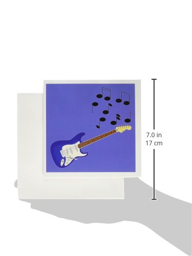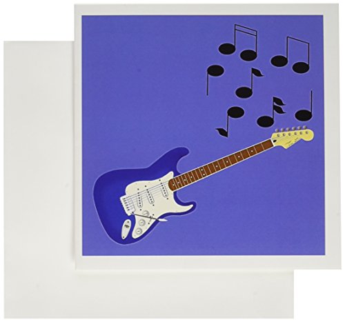 3dRose Blue Sunburst Guitar with musical notes - Greeting Cards, 6 x 6 inches, set of 12 (gc_24095_2)
