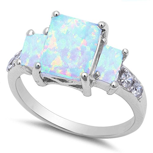 -. Title : Radiant Cut Lab Created White Opal & Cz .925 Sterling Silver Ring sizes 6-9
