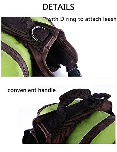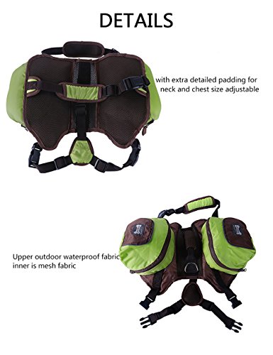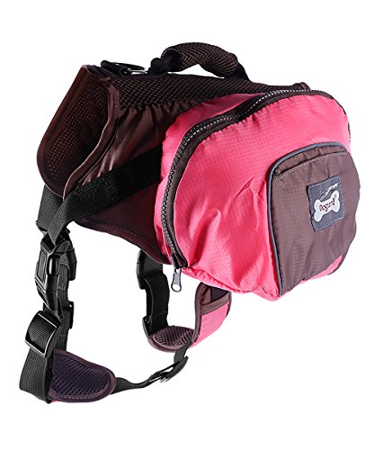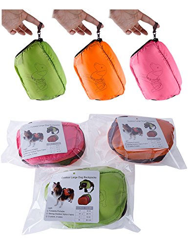-. Feature : Outdoor is made of waterproof fabric, Inner is breathable mesh fabric, comfortable and lightweight / D ring, durable and sturdy, anti-corrosion and stainless, convenient to attach leash / Thick nylon webbing, strong bearing, offer you the chance to control the direction of dog / Two large saddlebag with zipper and small pouch on it. Meet your great needs on storage / Foldable, easy to storage when you don¡¯t need it, vibrant colors enhance visibility