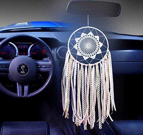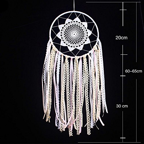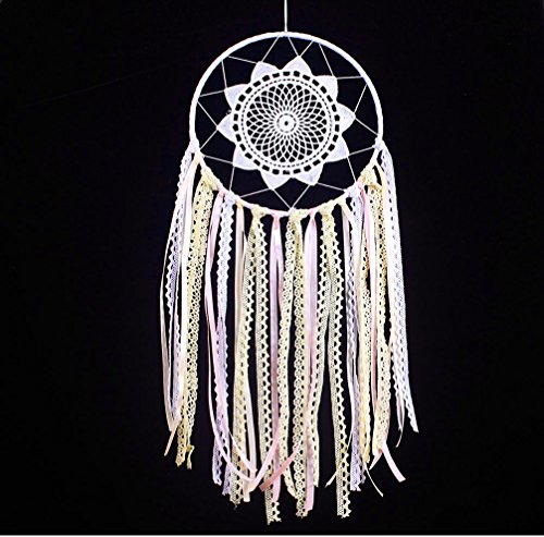 Handmade Ribbon Tassel Dream Catcher - Traditional Wall Hanging Decoration Ornament Gift (Pink ribbon lace dream catcher)