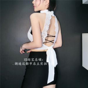 ホルターネックトップス 短丈トップス バックレース セクシー セクシーデザイン バックリボン プチプラ 大人トップス