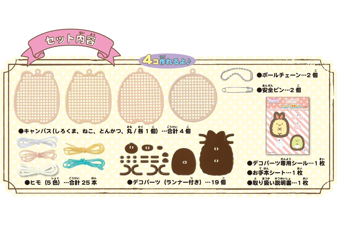 Ball chain (2), safety pin (2), safety pin (2), card sheet (1), deco parts (4), decor parts (runner shape) (1)