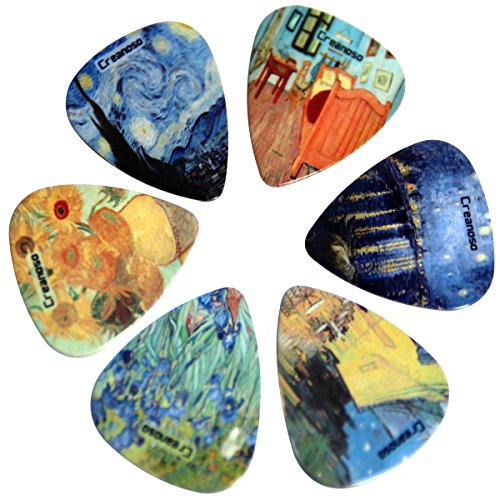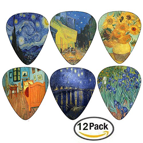 Vincent Van Gogh Guitar Picks - Celluloid Medium 12 Pack - Starry Night Sunflowers Cafe by Creanoso - Best Stocking Stuffer Gifts for Guitarist - Limited Time Deal