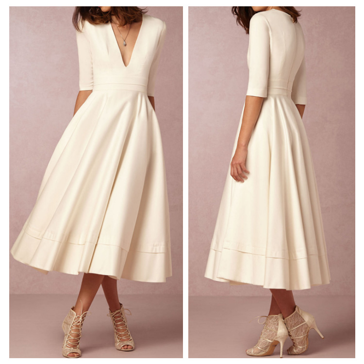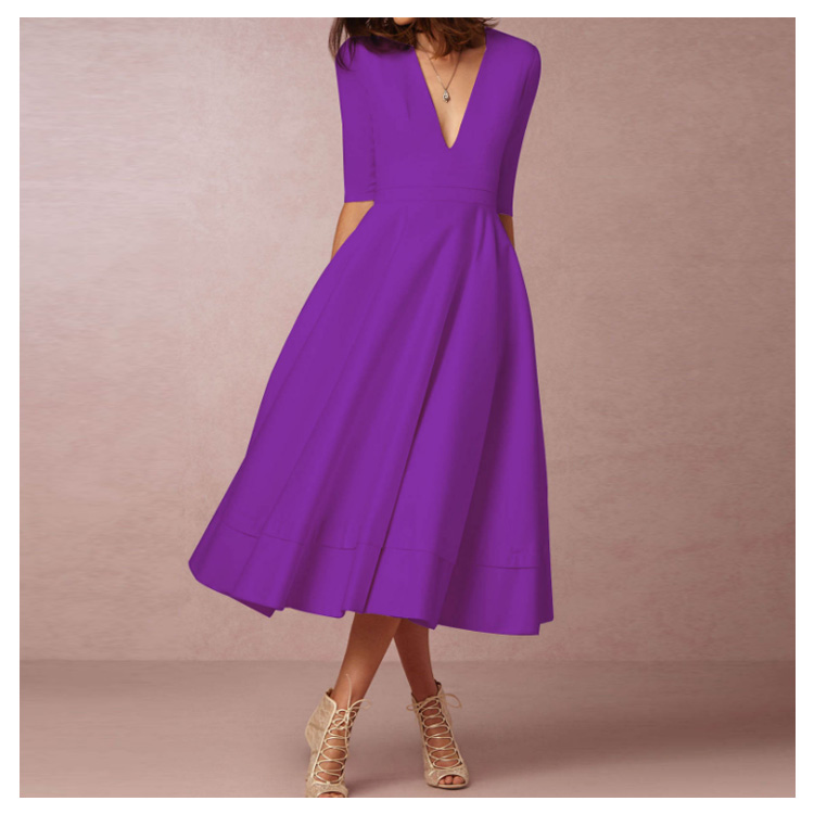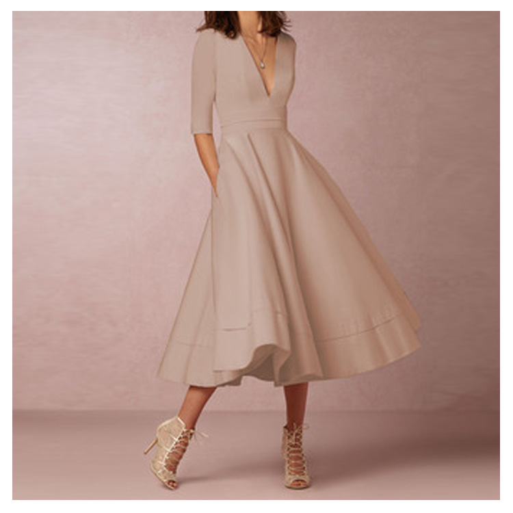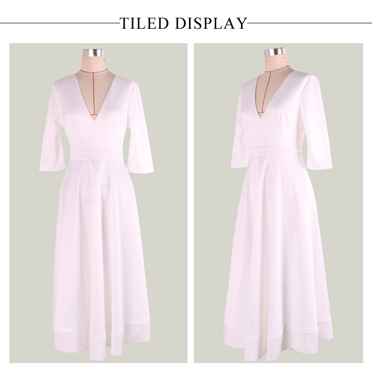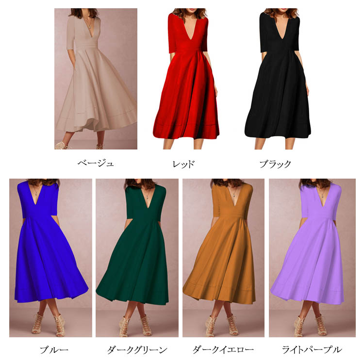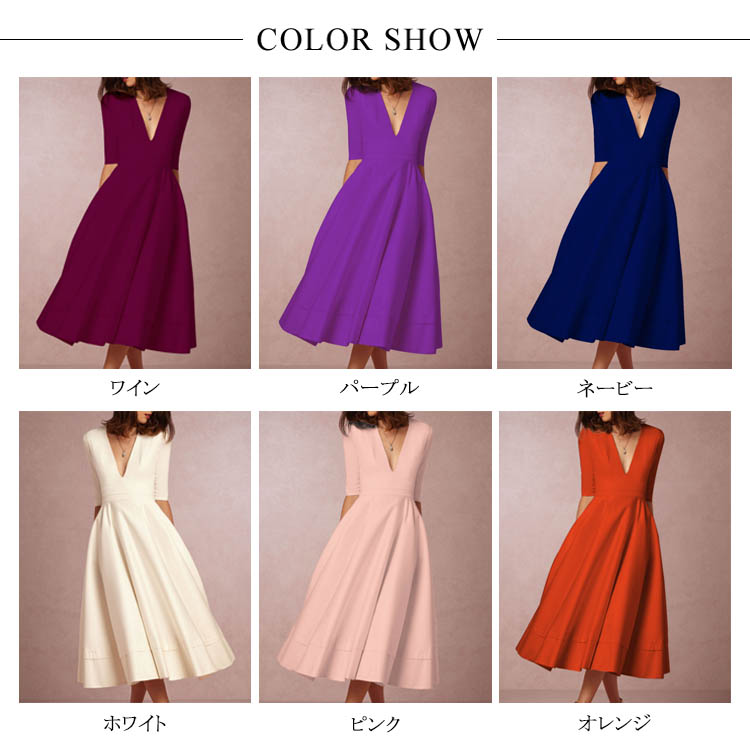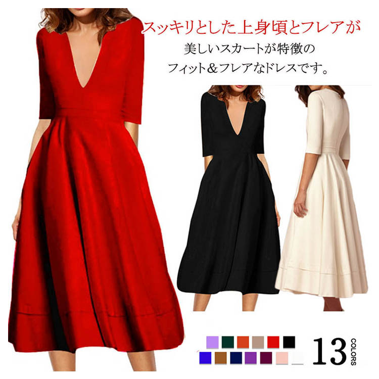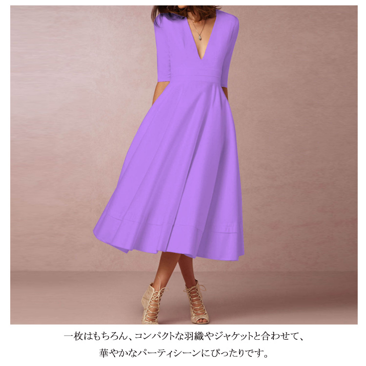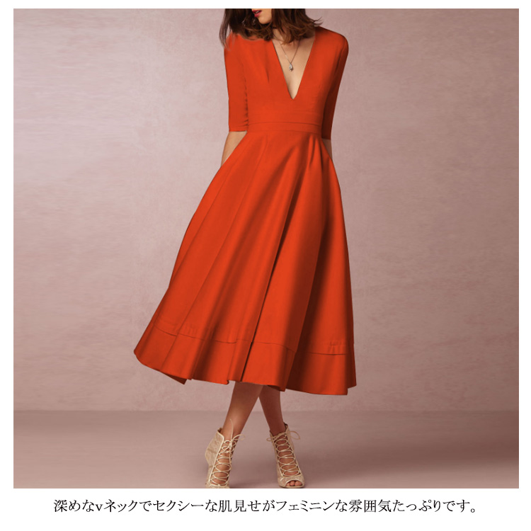 | スッキリとした上身頃とフレアが美しいスカートが特徴のフィット&フレアなドレスです。深めなvネックでセクシーな肌見せがフェミニンな雰囲気たっぷりです。ハイウエストラインは足を長く見せ、ウエストタックのおかげでスカートに適度なボリューム感を出しています。一枚はもちろん、コンパクトな羽織やジャケットと合わせて、華やかなパーティシーンにぴったりです。 | |
