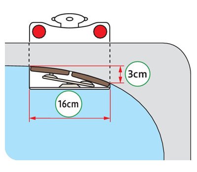 The mounting width is 16 cm, and the bending music can correspond up to the width 3 cm.