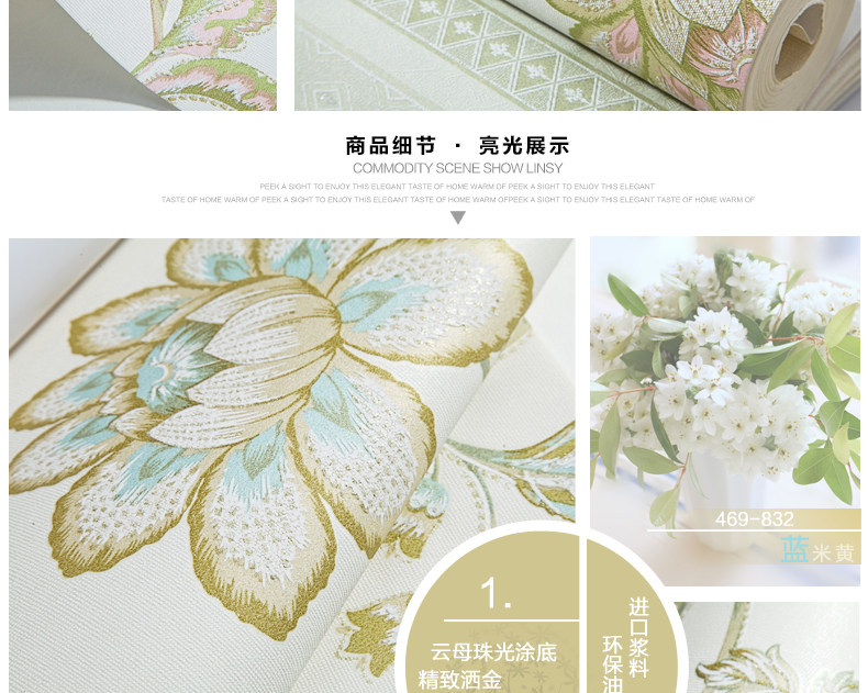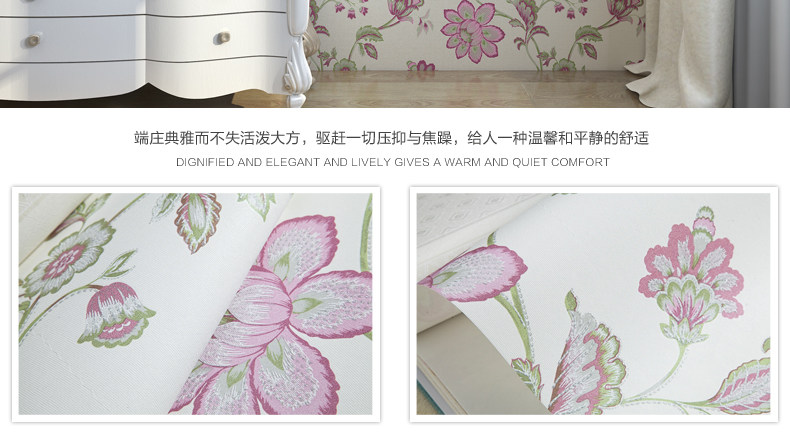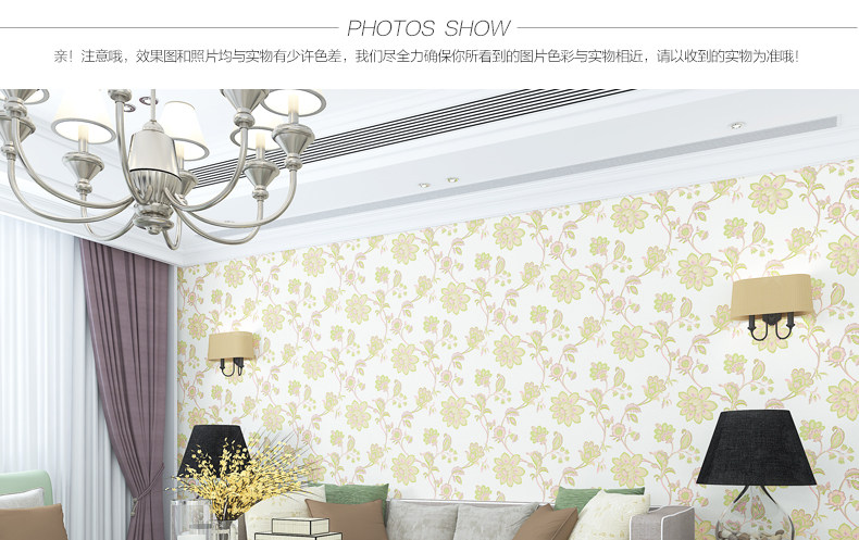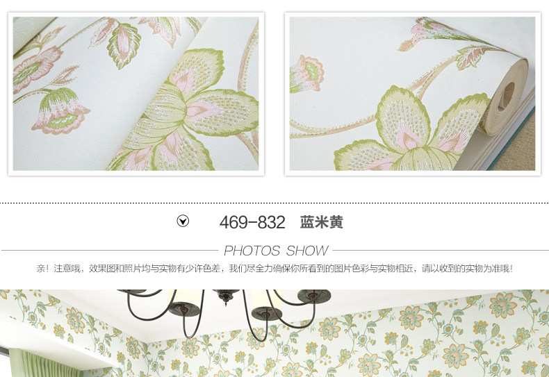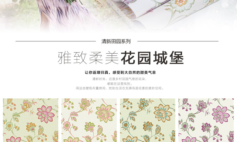 Brand: Royal family paper Each roll width (m): 0.53 Roll length (m): 9.5 Denominated: Volume 1 Style: Pastoral Surface layer process: printing Wallpaper Size: 5.03㎡ / roll Material: Non-woven, non-adhesive, accessories to buy another Due to light and other reasons, it is inevitable color, please prevail in kind