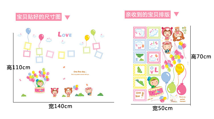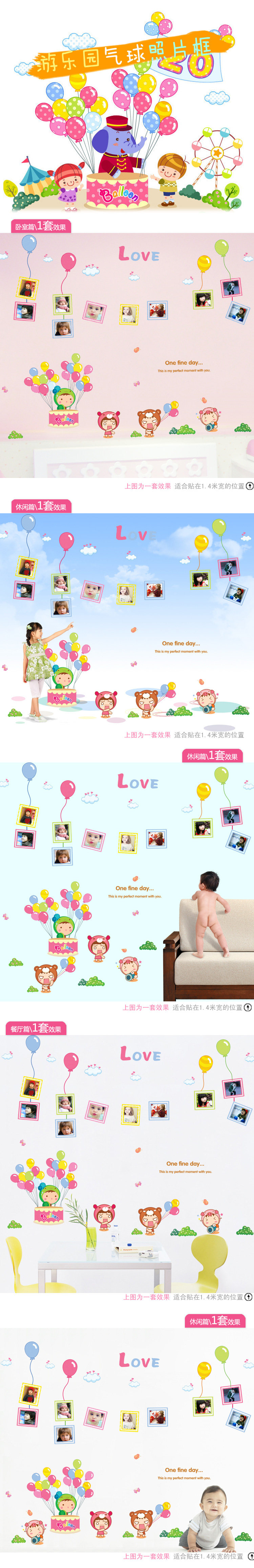 可移除墙贴纸 游乐园气球 照片贴照片墙相框墙纸贴画儿童幼儿园