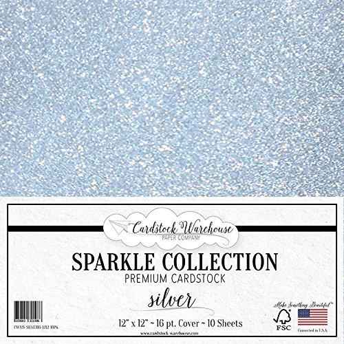MirriSparkle Silver Glitter Cardstock Paper 12" x 12"- 16 PT/280gsm - 10 Sheets from Cardstock Warehouse