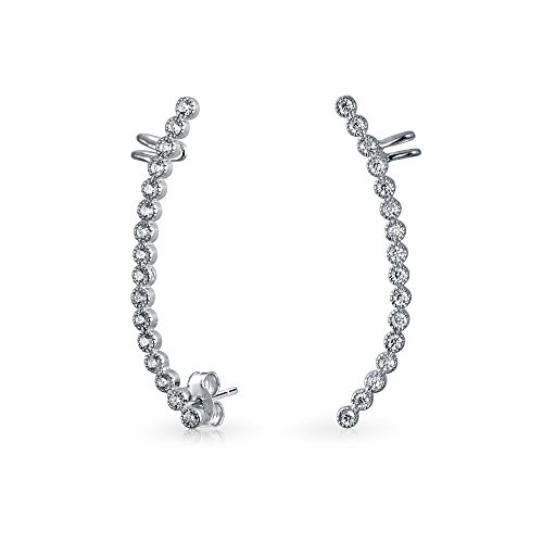-. Title : Bling Jewelry Sterling Silver CZ Modern Curve Ear Cuff Ear Crawler Pins