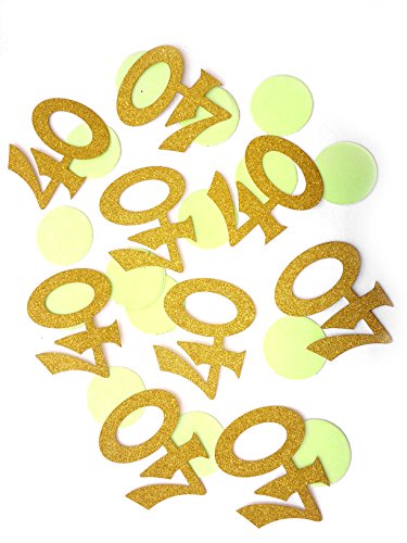 Glitter Gold 40th Birthday Party Confetti - 2 Packs - (40ct each pack), 40th Birthday Decorations, Mint Green and Gold Number "40" and Circle Confetti, Celebrating 40 Party Confetti