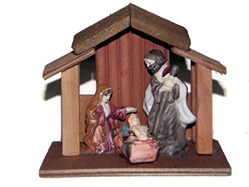 4 piece - not movable Nativity Christmas Holiday set - Jesus, Mary, Joseph Figures in the Manger 5 x 4.5 x 3 inches